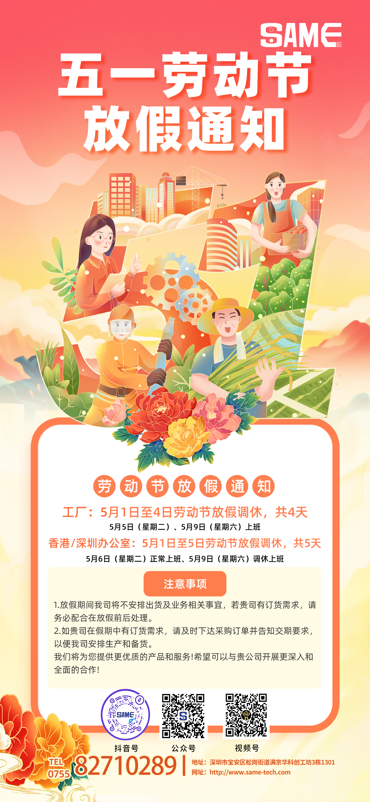 一、劳动节放假时间安排:1.工厂: